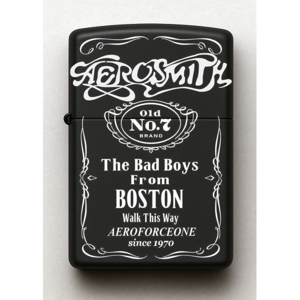 Aerosmith Desenli Kişiye Özel İsimli Siyah Benzinli Metal Çakmak