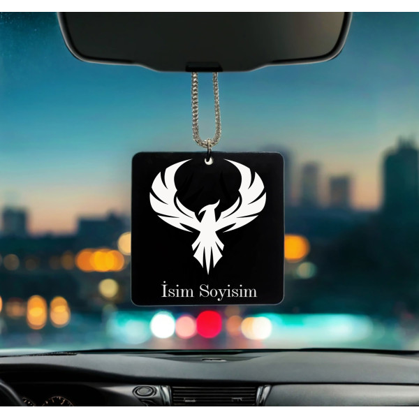 Anka Kuşu Desenli Kişiye Özel İsimli Pleksi Dikiz Ayna Süsü DP08
