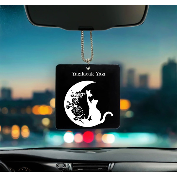 Kedi Desenli Kişiye Özel İsimli Pleksi Dikiz Ayna Süsü DP41