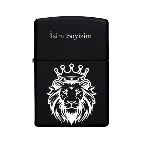 Aslan Desenli Kişiye Özel Isimli Benzinli Siyah Metal Çakmak Z05