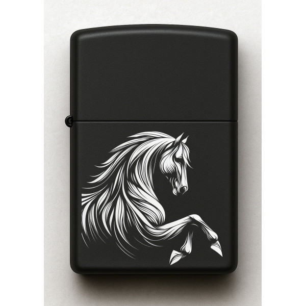 At Horse Desenli Kişiye Özel İsimli Siyah Benzinli Metal Çakmak