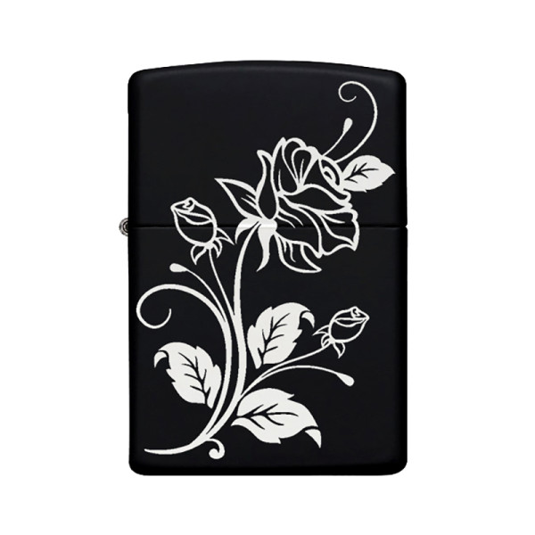 Çiçek Desenli Kişiye Özel İsimli Benzinli Siyah Metal Çakmak