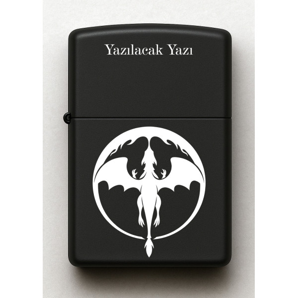 Ejderha Desenli Kişiye Özel İsimli Siyah Benzinli Metal Çakmak E27