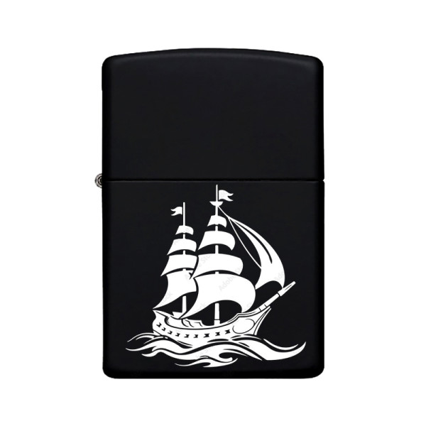 Gemi Desenli Kişiye Özel İsimli Benzinli Siyah Metal Çakmak