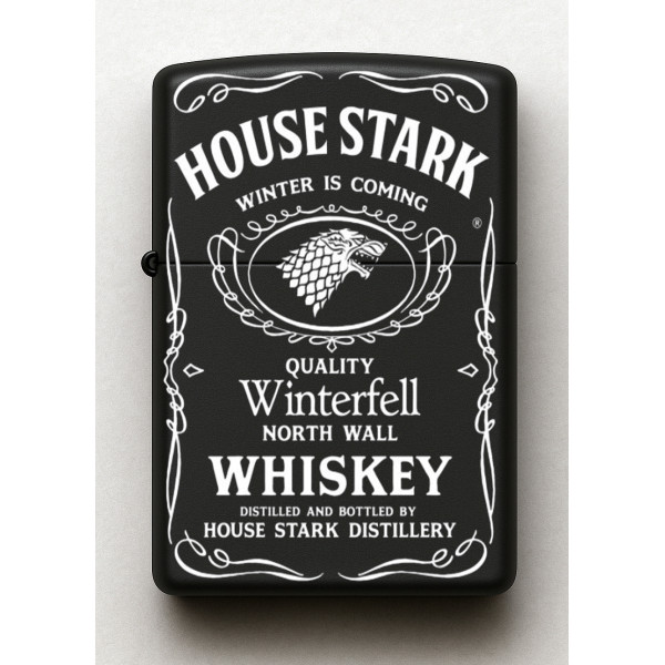 House Stark Winter is Coming Desenli Kişiye Özel İsimli Siyah Benzinli Metal Çakmak