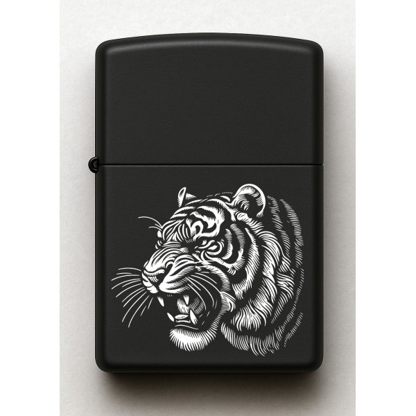 Kaplan Desenli Kişiye Özel İsimli Siyah Benzinli Metal Çakmak E49