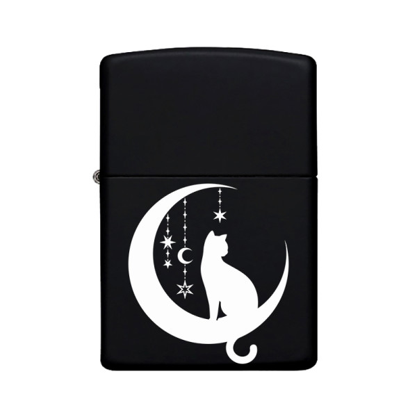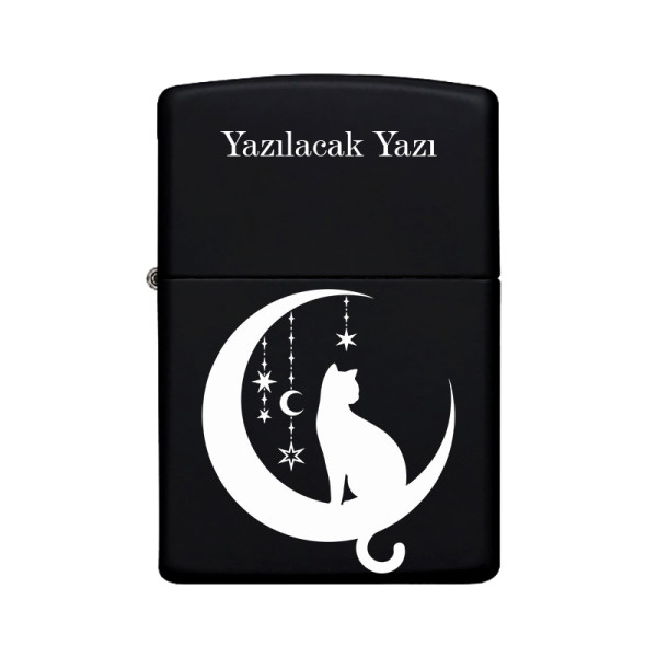 Kedi Desenli Kişiye Özel İsimli Benzinli Siyah Metal Çakmak Z32