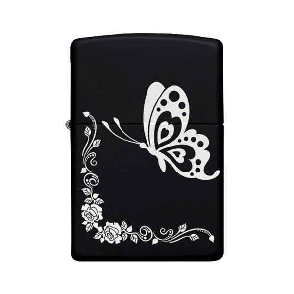Kelebek Desenli Kişiye Özel İsimli Benzinli Siyah Metal Çakmak Z78