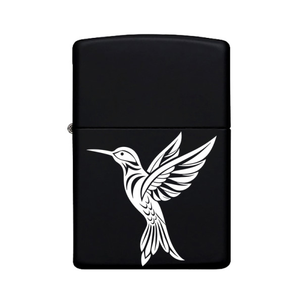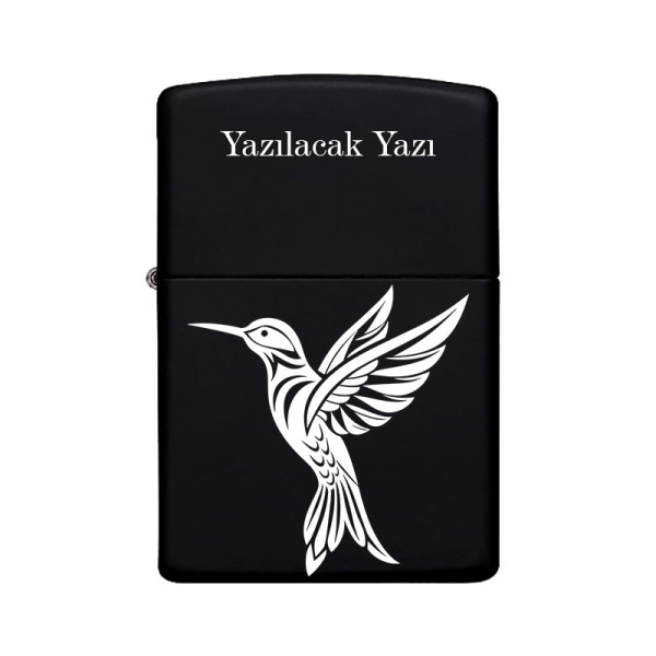Kuş Desenli Kişiye Özel İsimli Benzinli Siyah Metal Çakmak