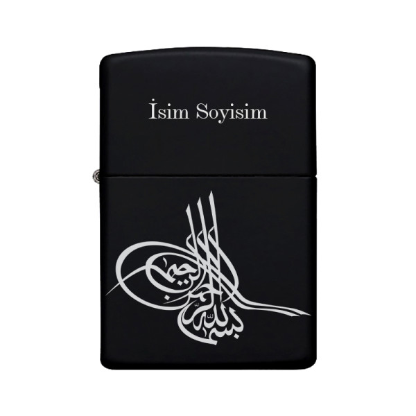 Osmanlı Tuğrası Desenli Kişiye Özel İsimli Benzinli Siyah Metal Çakmak