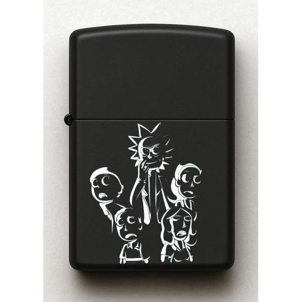 Rick and Morty Night Family Desenli Kişiye Özel İsimli Siyah Benzinli Metal Çakmak