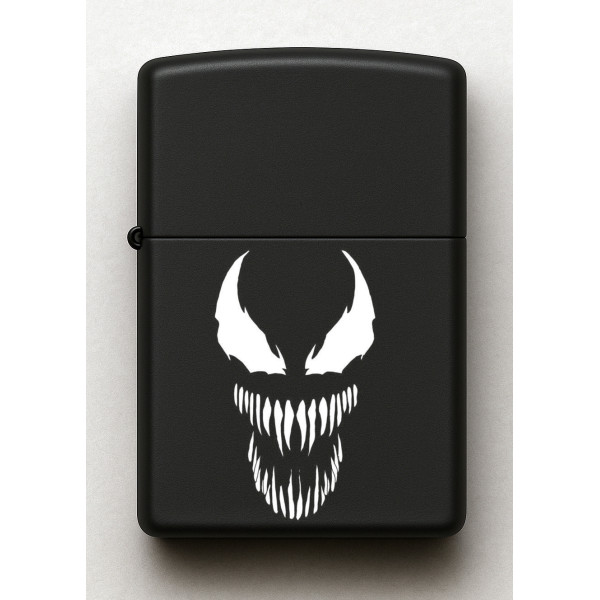 Venom Desenli Kişiye Özel İsimli Siyah Benzinli Metal Çakmak E100