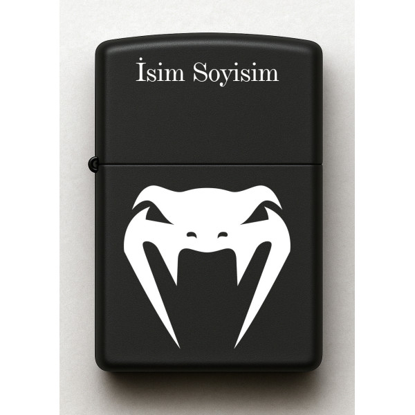 Yılan Desenli Kişiye Özel İsimli Siyah Benzinli Metal Çakmak