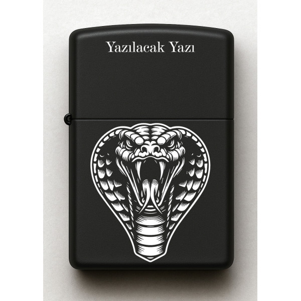Kobra Yılan Desenli Kişiye Özel İsimli Siyah Benzinli Metal Çakmak