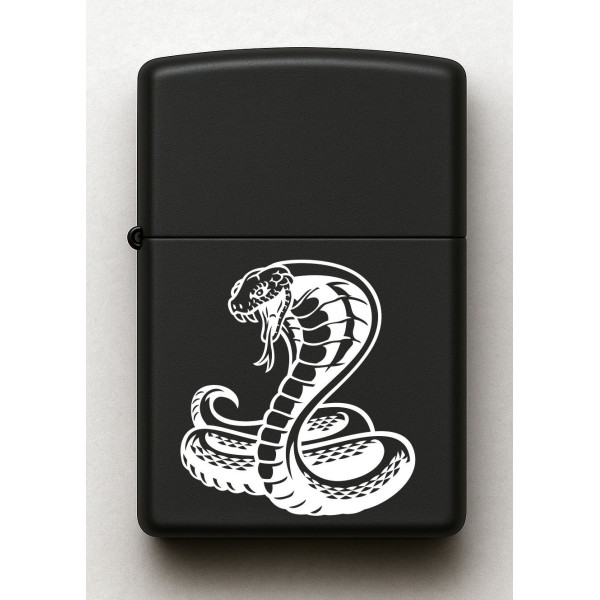 Kobra Yılan Desenli Kişiye Özel İsimli Siyah Benzinli Metal Çakmak E61