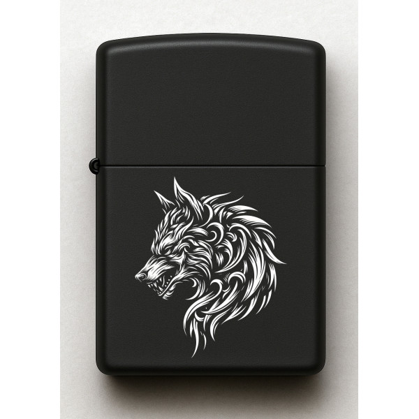 Kurt Canavar Desenli Kişiye Özel İsimli Siyah Benzinli Metal Çakmak E20