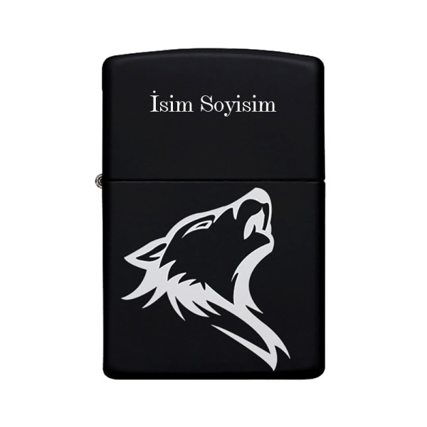 Kurt Desenli Kişiye Özel İsimli Benzinli Siyah Metal Çakmak Z83