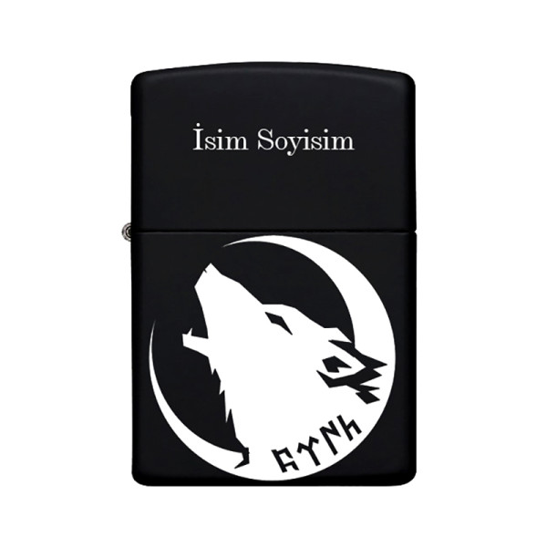 Kurt Desenli Kişiye Özel İsimli Benzinli Siyah Metal Çakmak Z85