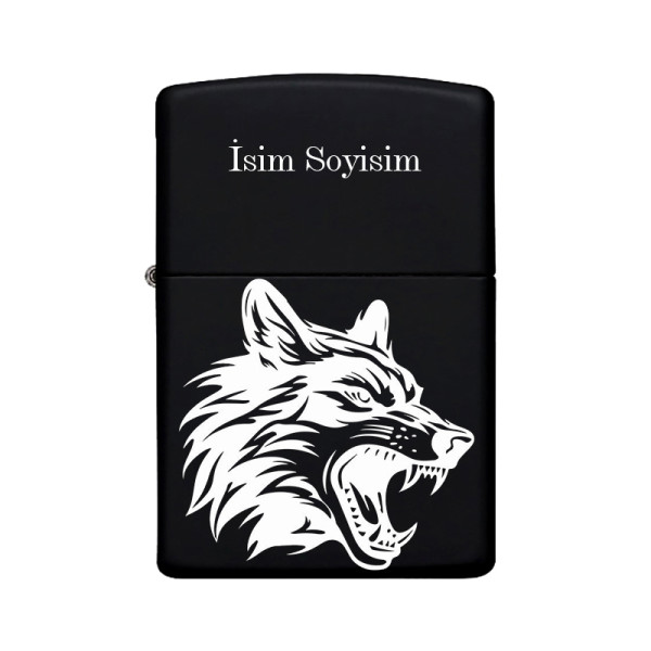 Kurt Desenli Kişiye Özel İsimli Benzinli Siyah Metal Çakmak Z87