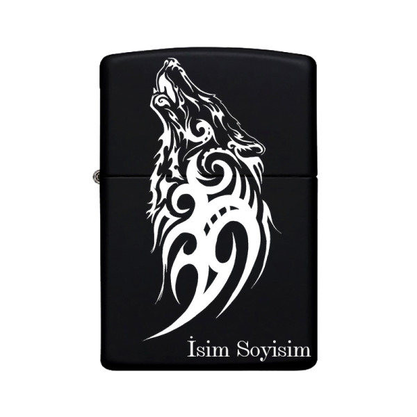 Kurt Desenli Kişiye Özel İsimli Benzinli Siyah Metal Çakmak Z92