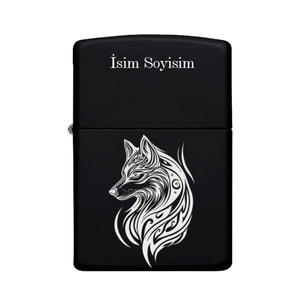 Kurt Desenli Kişiye Özel İsimli Benzinli Siyah Metal Çakmak Z93