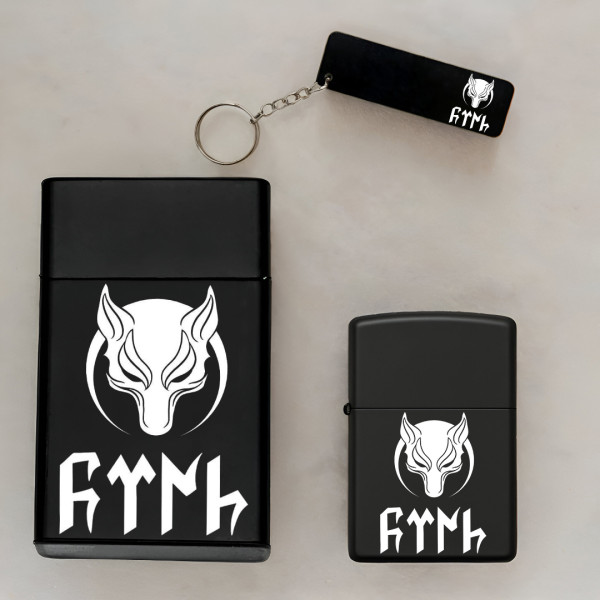 Kurt Göktürk Türk Desenli Kişiye Özel İsimli Metal Sigara Kutusu, Benzinli Çakmak ve Anahtarlık Seti