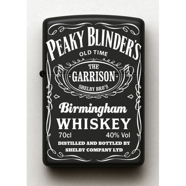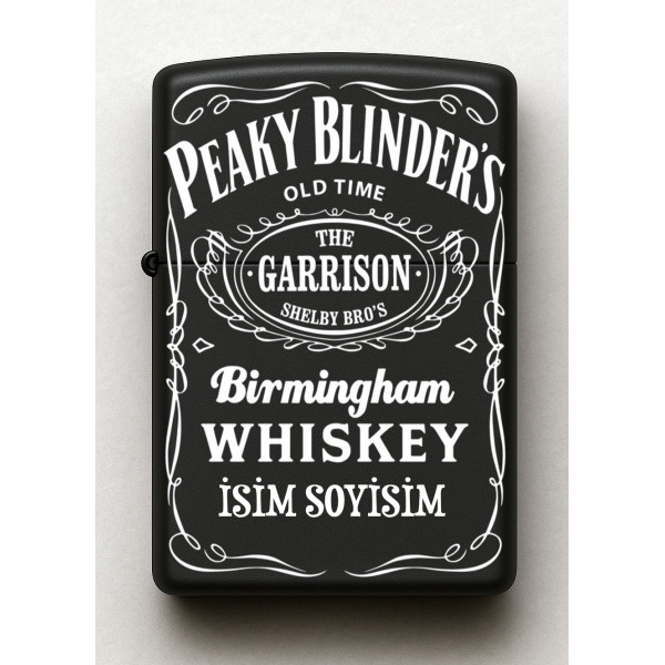 Peaky Blinders Desenli Kişiye Özel İsimli Siyah Benzinli Metal Çakmak