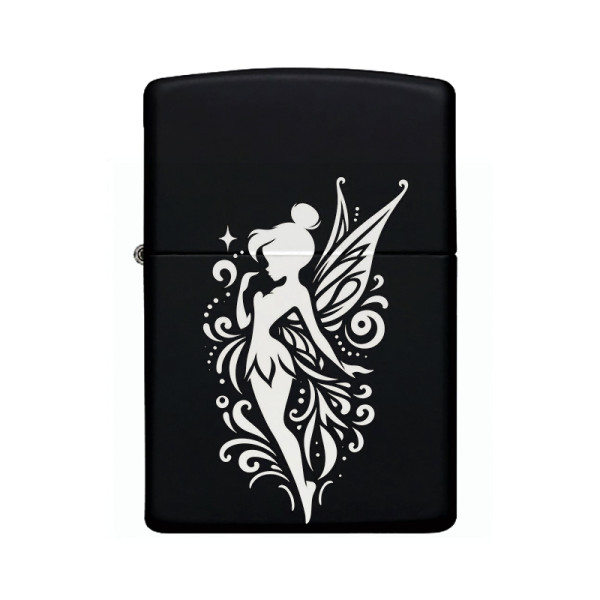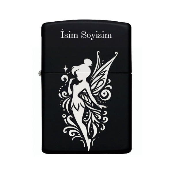 Peri Desenli Kişiye Özel İsimli Benzinli Siyah Metal Çakmak