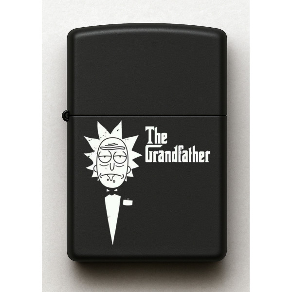 Rick and Morty Grandfather Desenli Kişiye Özel İsimli Siyah Benzinli Metal Çakmak