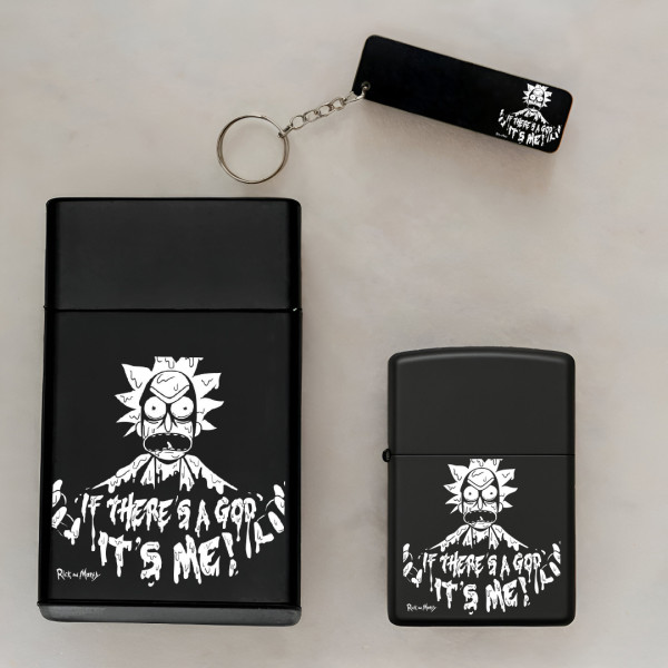 Rick and Morty Toxic Rick Kişiye Özel Isimli Metal Sigara Kutusu, Benzinli Çakmak ve Anahtarlık Seti